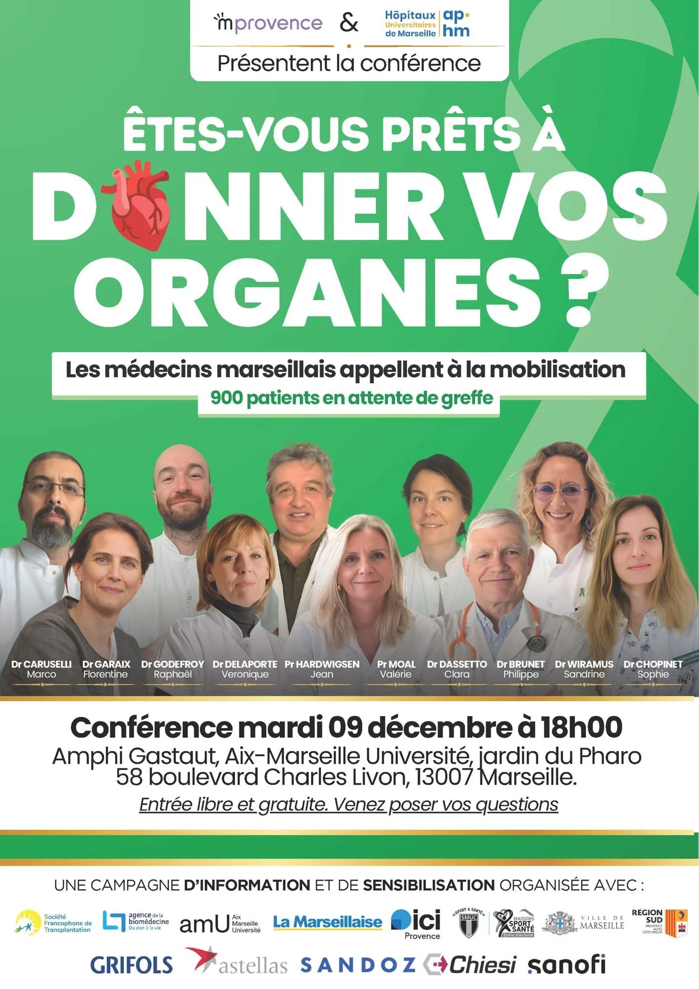 Le média MProvence et l’AP-HM vous invitent à une grande soirée d’information et de sensibilisation consacrée au don d’organes, un enjeu majeur de santé publique. À Marseille, près de 900 patients sont actuellement en attente de greffe, soulignant l’importance de cette mobilisation.