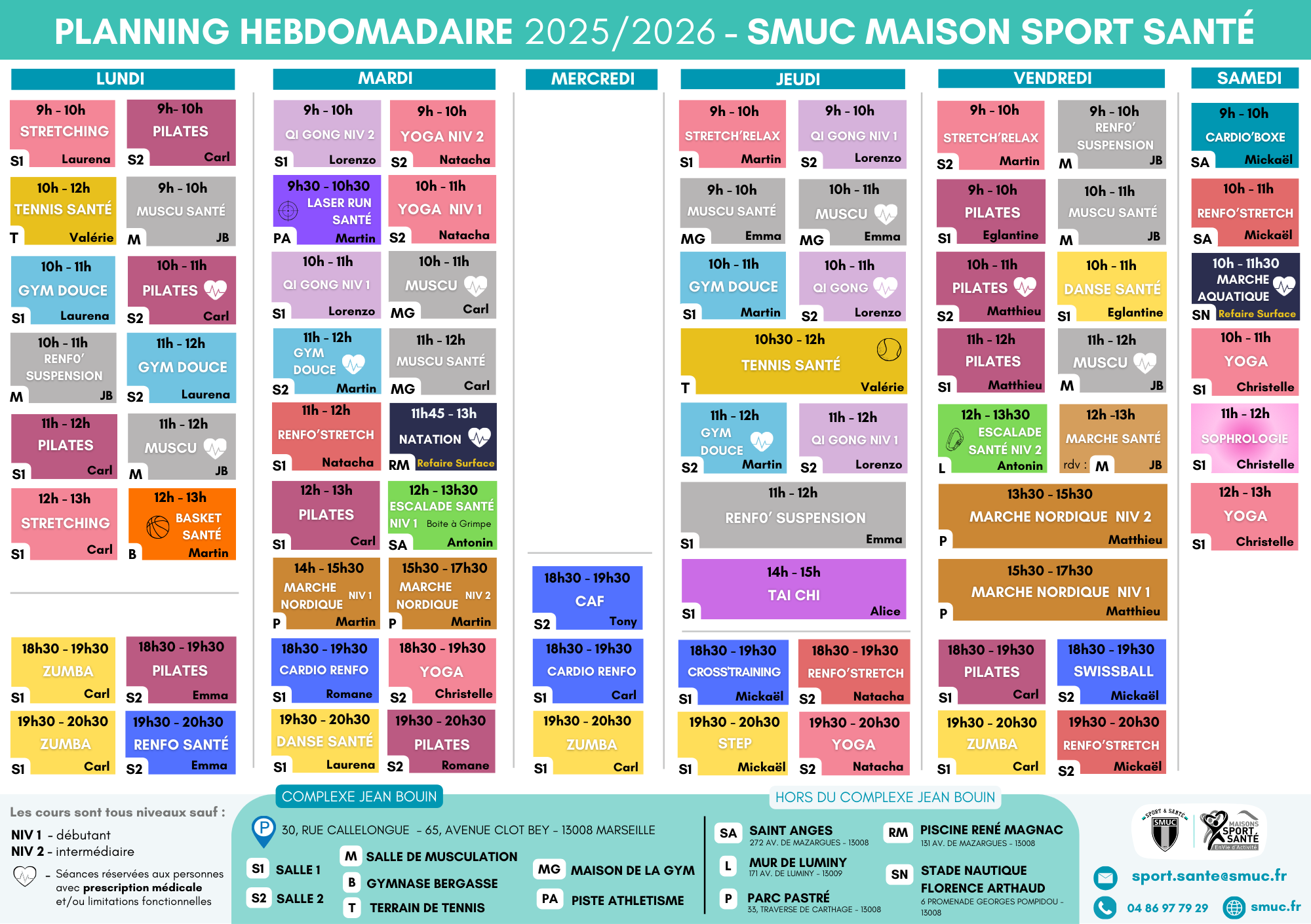 Pour vous inscrire, RDV au secrétariat sport santé, avec un certificat médical de non contre-indication à la pratique sportive, daté de moins d’1 an ou votre prescription d’activité physique.