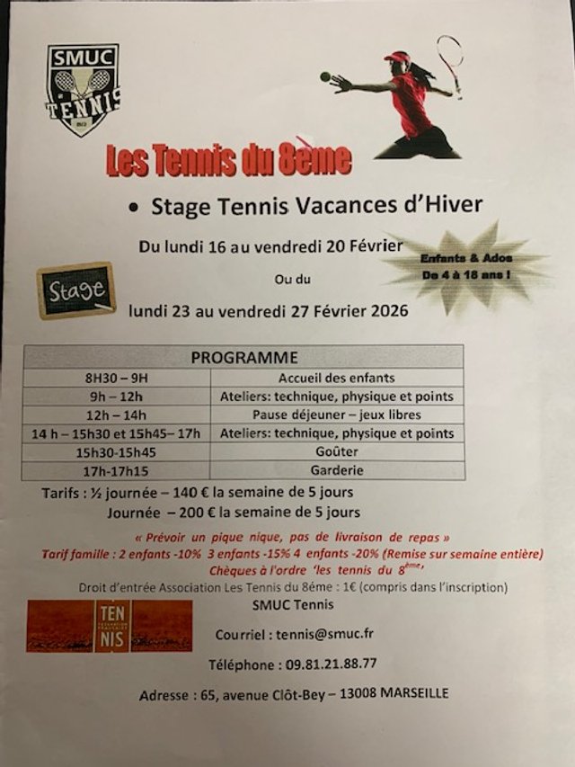 STAGE DE TENNIS – SMUC HIVER 2026